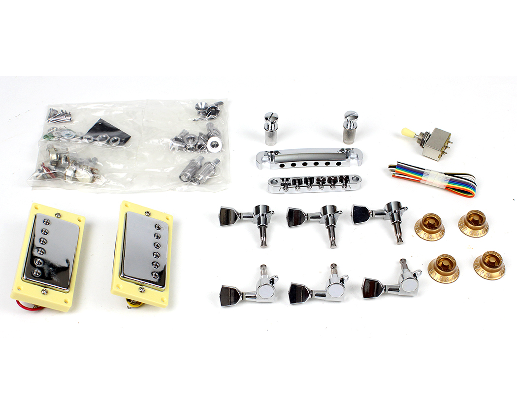- 6 (3 a side) Chrome machine heads (with nickel inserts and screws)